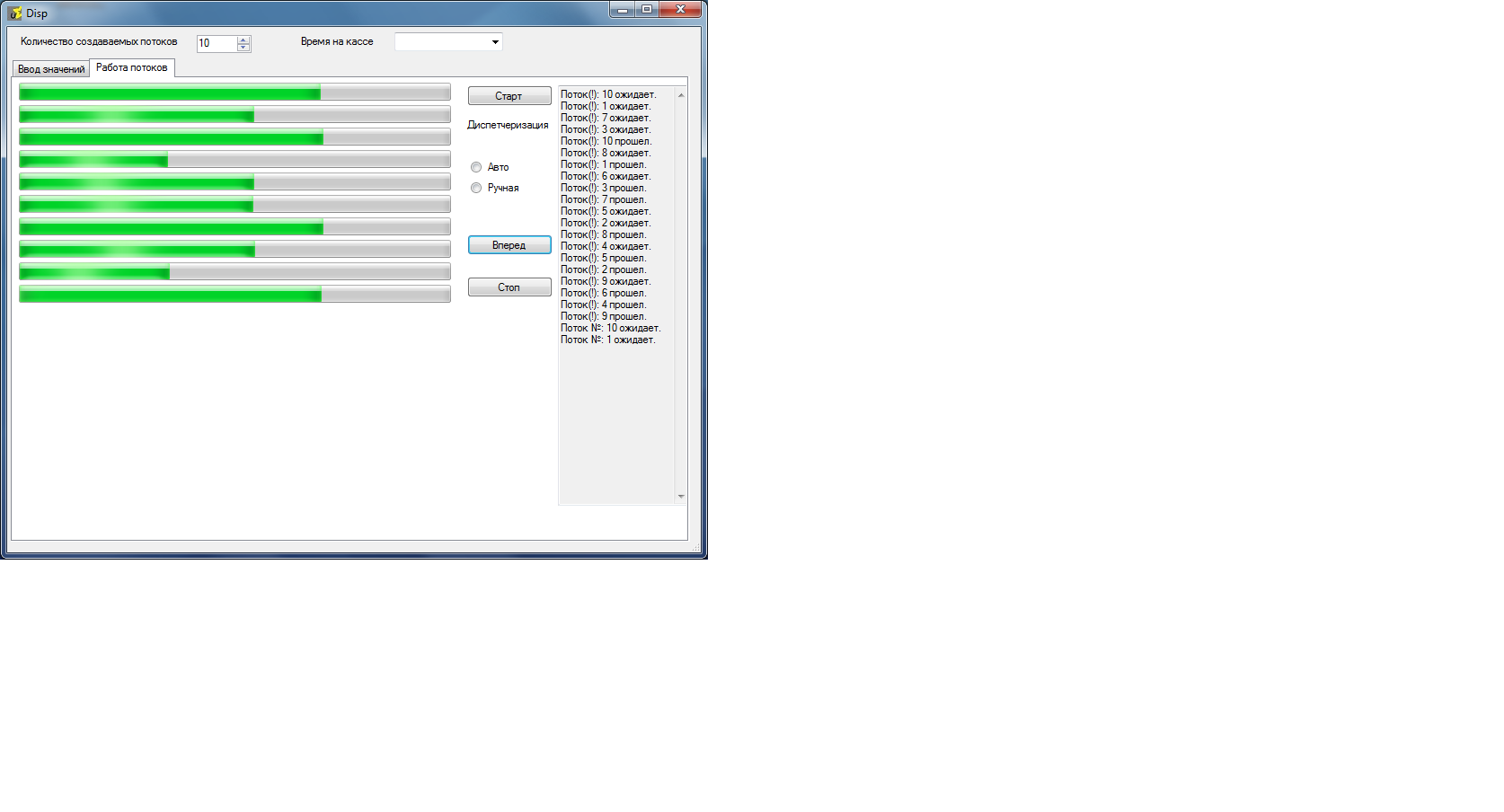 Написано с использованием Mutex,Semaphor,ProgressBar,